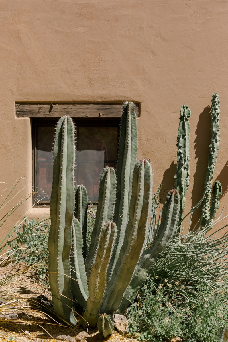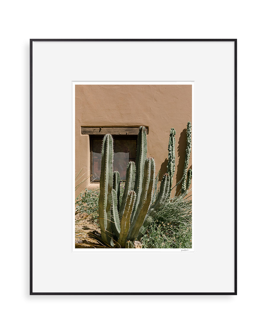 An adobe building and cactus plants make for the quintessential southwestern desert print.