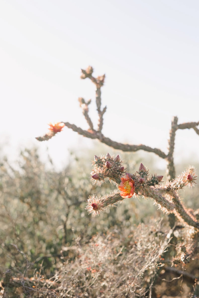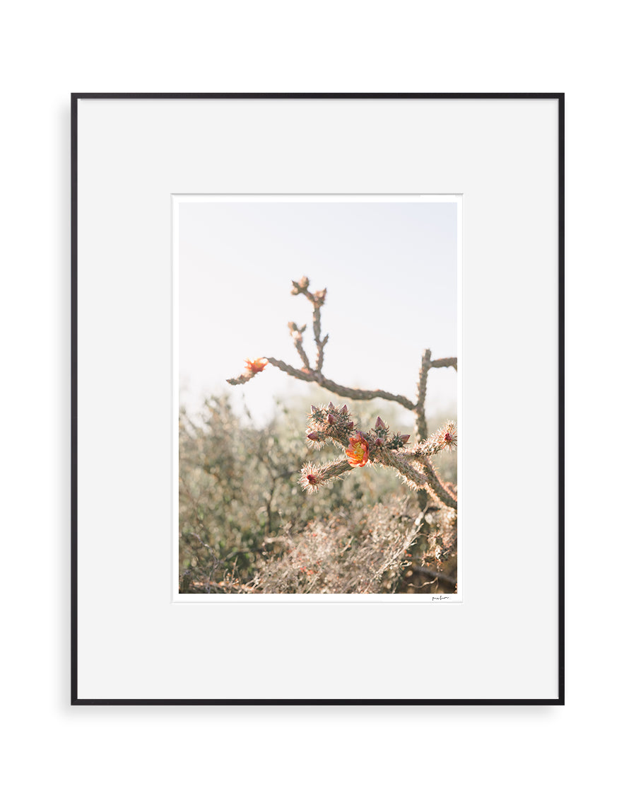 Photograph of a flowering cholla plant from the desert ii collection, taken in Tucson, Arizona. The branches give this image a feeling of movement, hence the name Dancing Cholla.
