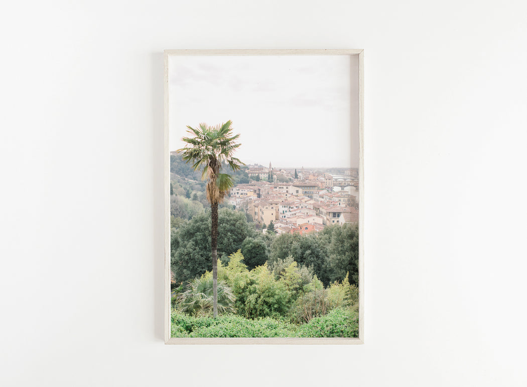 This fine art print of a palm tree among the hills of the Tuscan countryside in Florence, Italy is the perfect piece of wall art to make your house feel like home.
