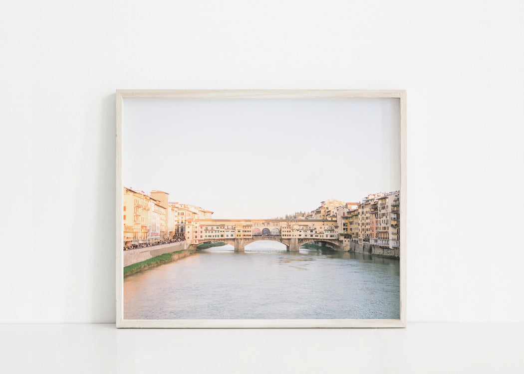This fine art print of Ponte Vecchio in Florence, Italy is the perfect piece of wall art to bring the beauty of Europe into your decor and make your house feel like home.