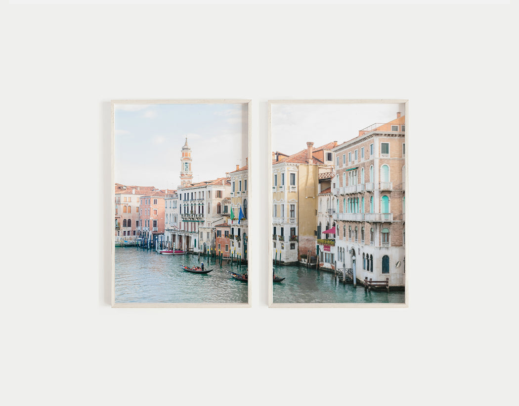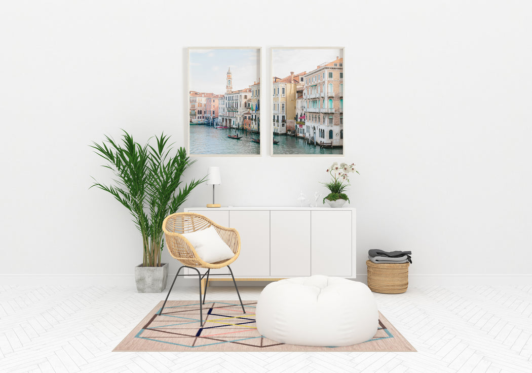 This fine art print set of gondolas in a canal in Venice, Italy is the perfect piece of wall art to make your house feel like home.