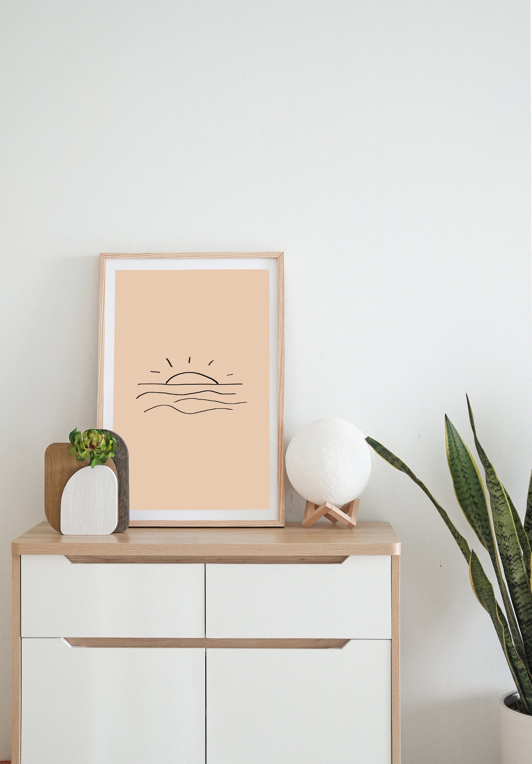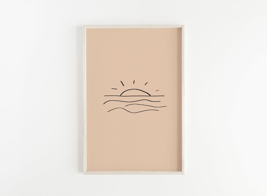 Minimalist and chic, this hand-drawn digital line drawing of the sun over the sea would be a perfect piece of wall art in any boho room.