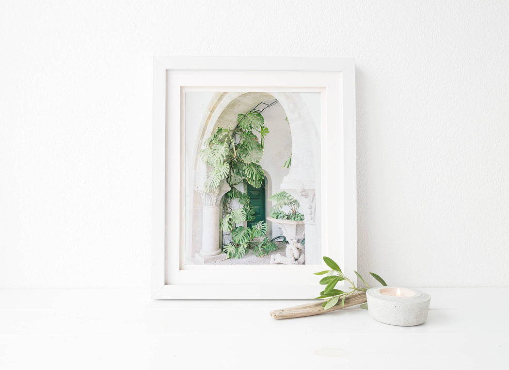 A fine art botanical print of a monstera philodendron plant found in a castle in Sintra, Portugal. It's the perfect housewarming gift for someone who loves plants!